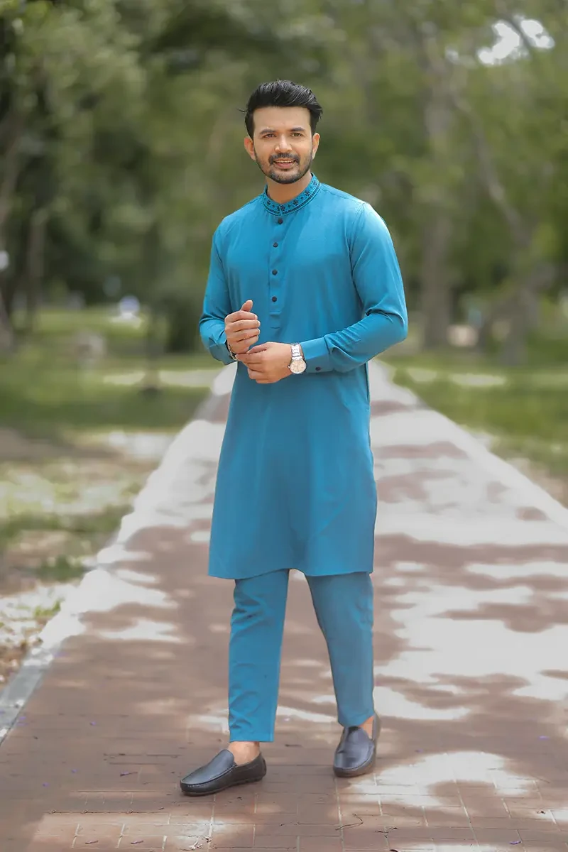 Step into elegance with our N2 Panjabi, meticulously crafted from 100% ultra-fine Fabric for a buttery-soft feel and effortless wear. Designed for the modern gentleman who values both tradition and refinement, this standout piece features signature embroidery, premium detailing, and Imported engraved buttons — a true symbol of distinction.
